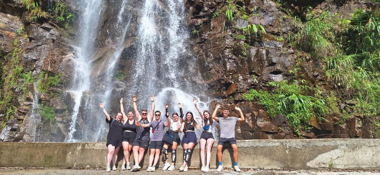 - Diving into the cool embrace of the natural pool beneath Du Gia waterfall