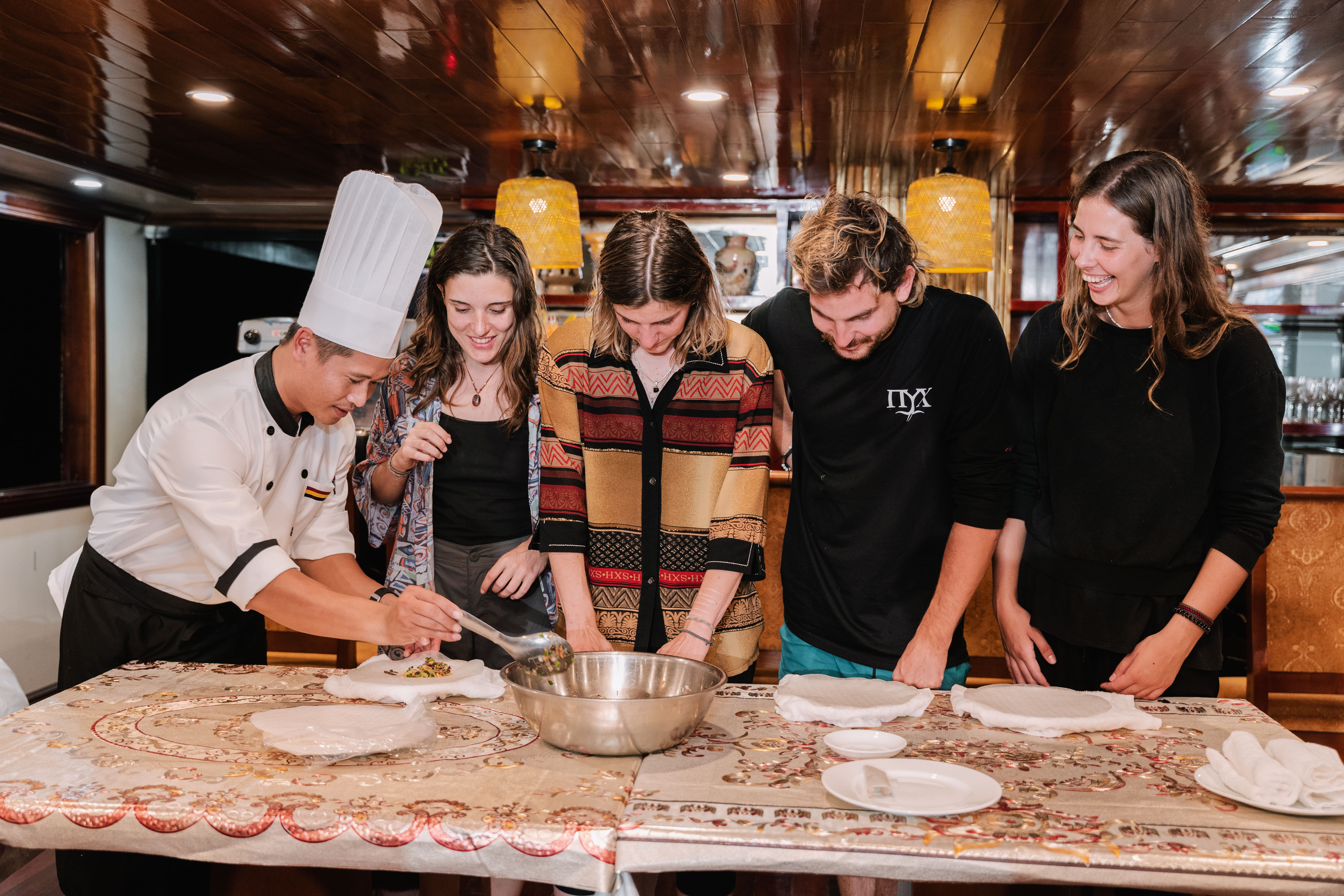 - Relax on a cozy boutique cruise (just 5-9 cabins) with delicious Vietnamese cuisine & a friendly crew.