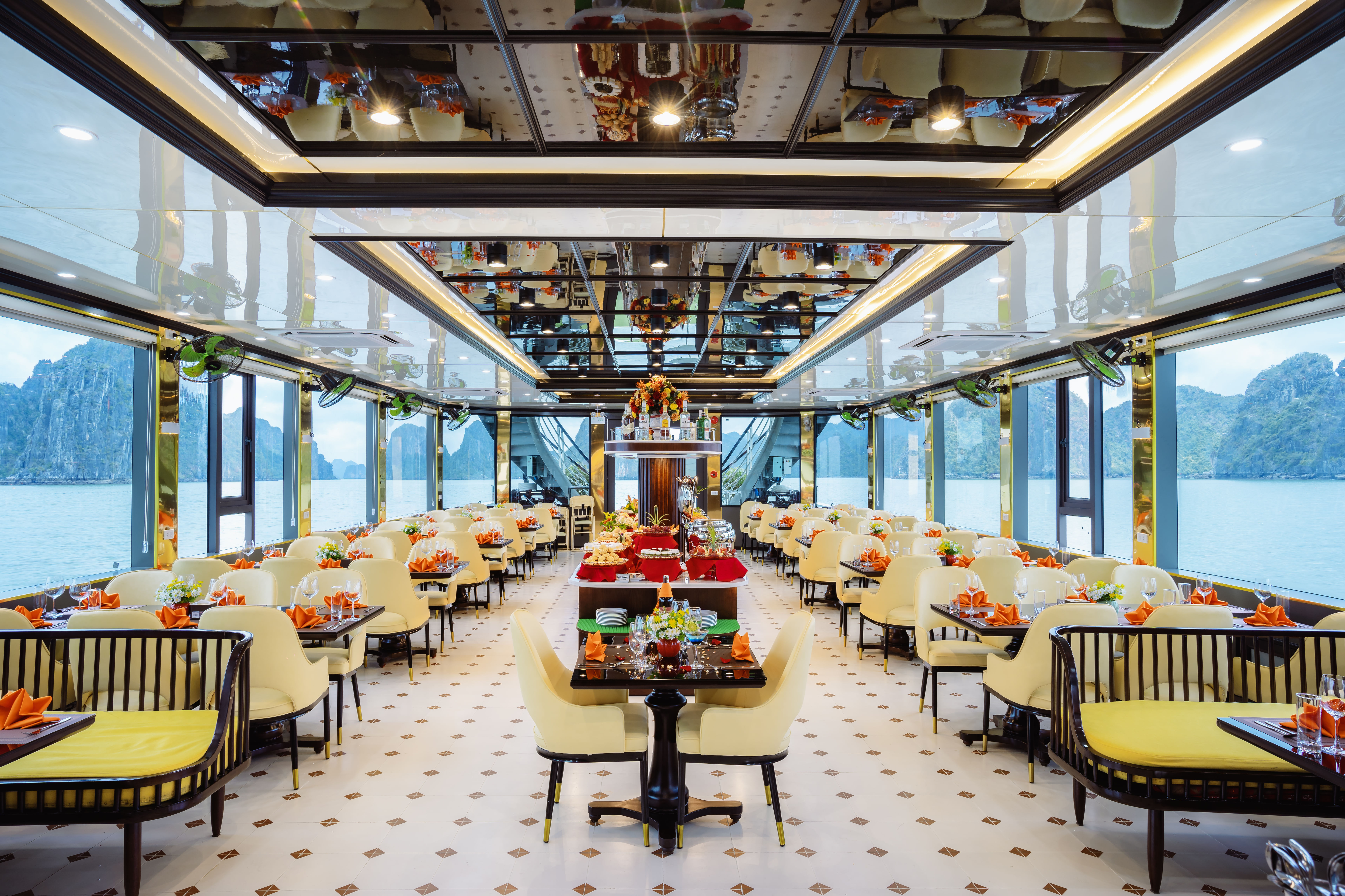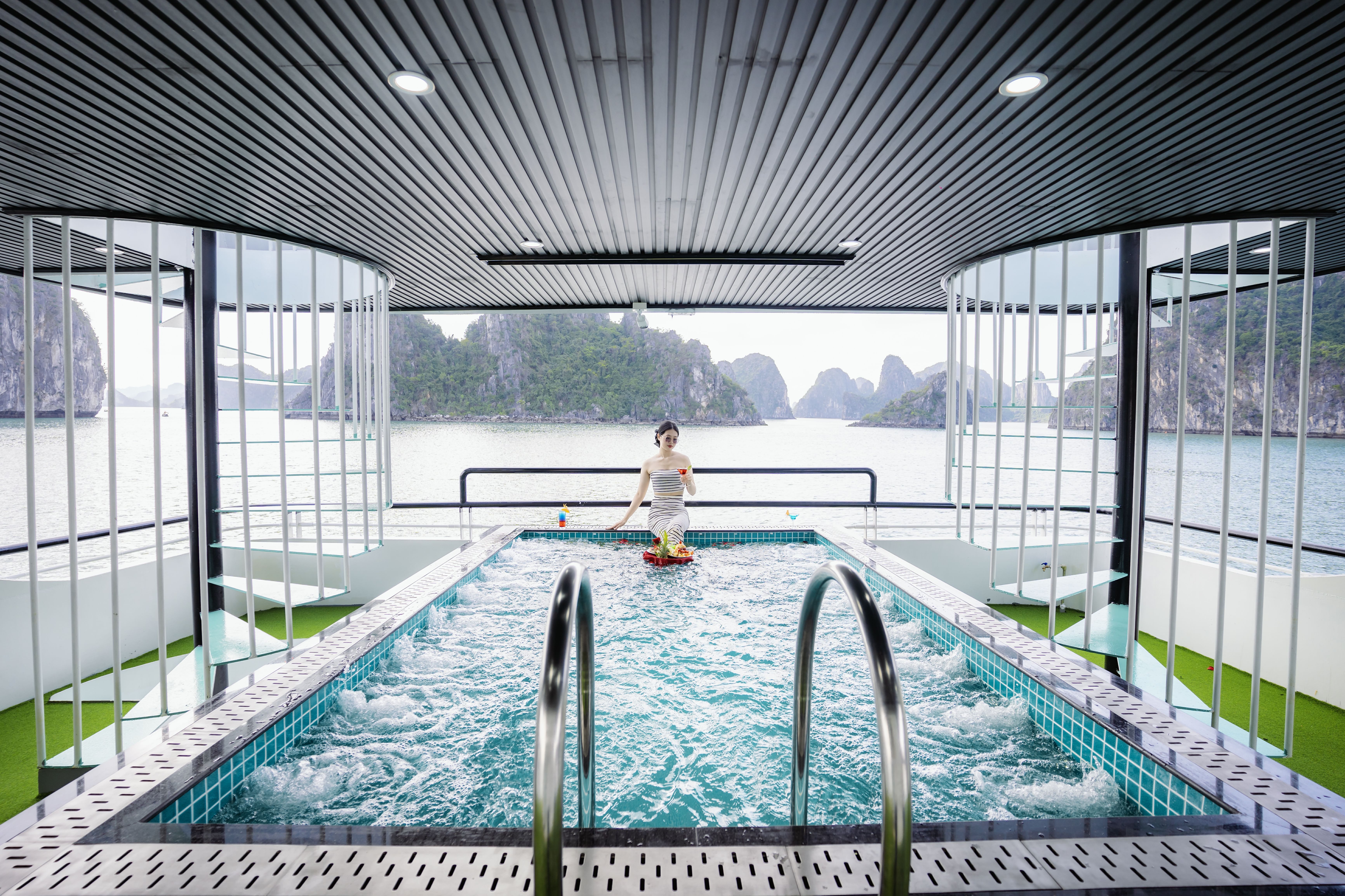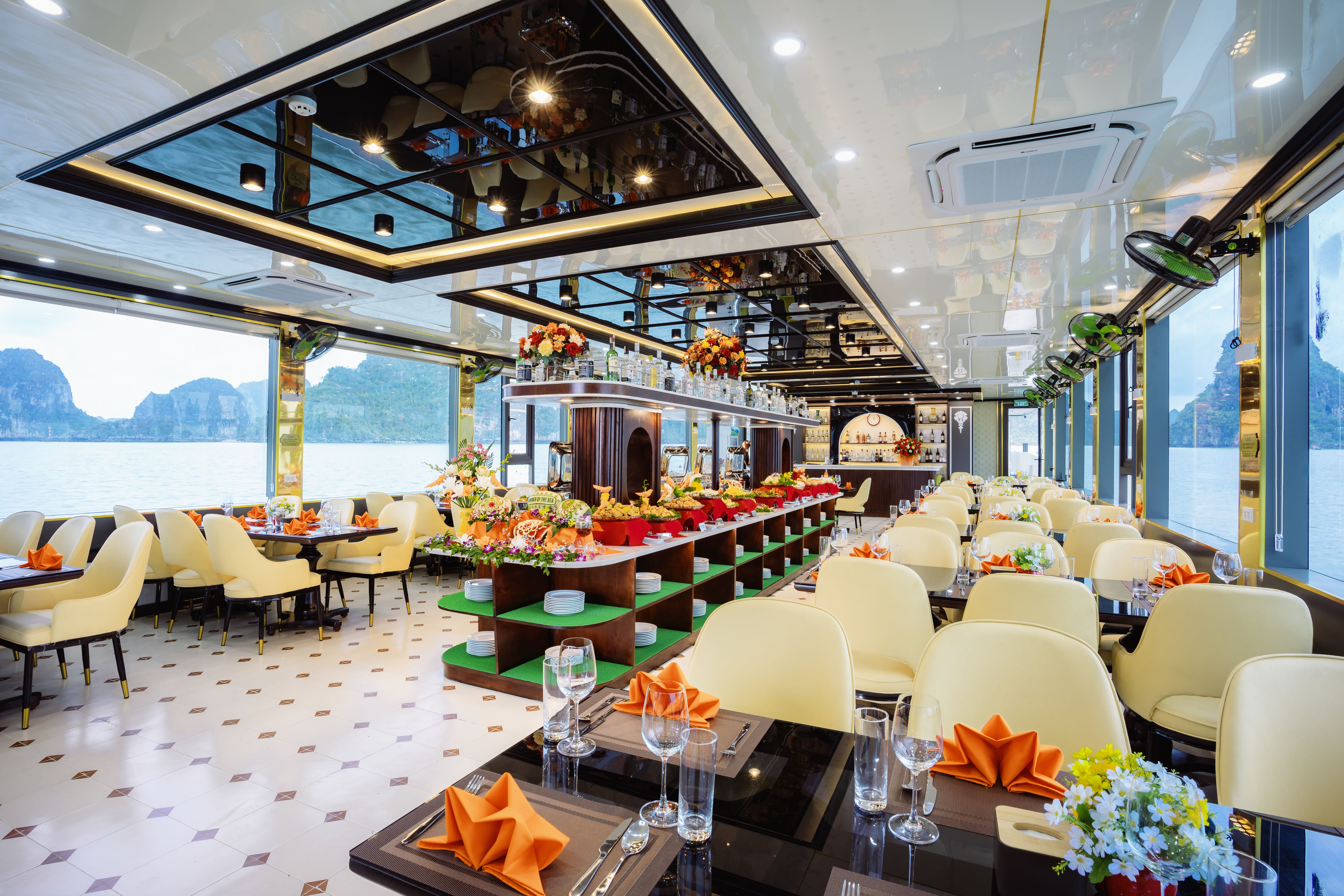 Our premium cruise offers a truly exceptional experience: relaxing in our four-season Jacuzzi while soaking in the stunning bay views and enjoying a sumptuous buffet lunch in our elegant restaurant complemented with refreshing welcome drinks, and towel for swimming.