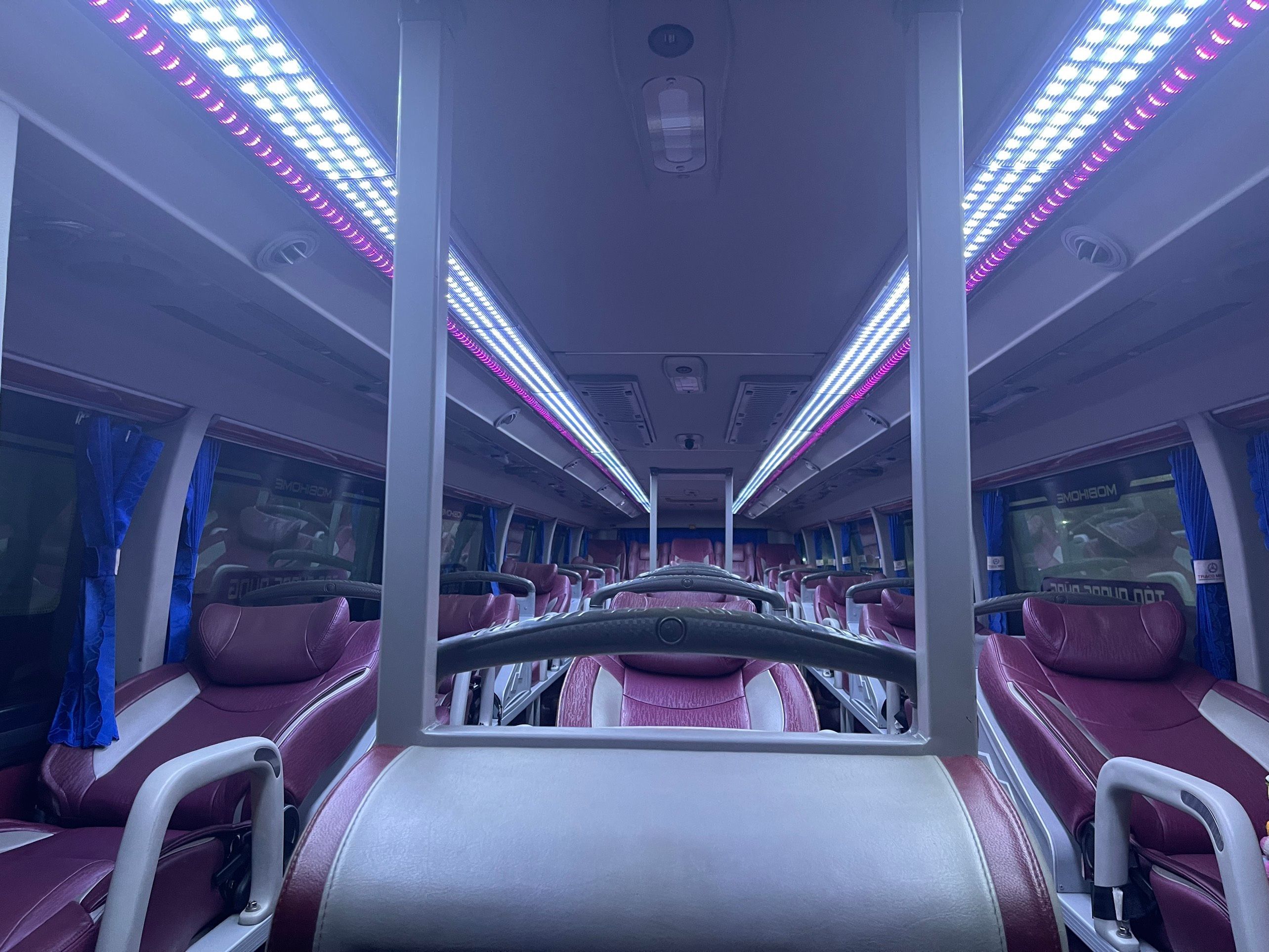 Enjoy a convenient bus journey with reclining seats, air-conditioning and blanket