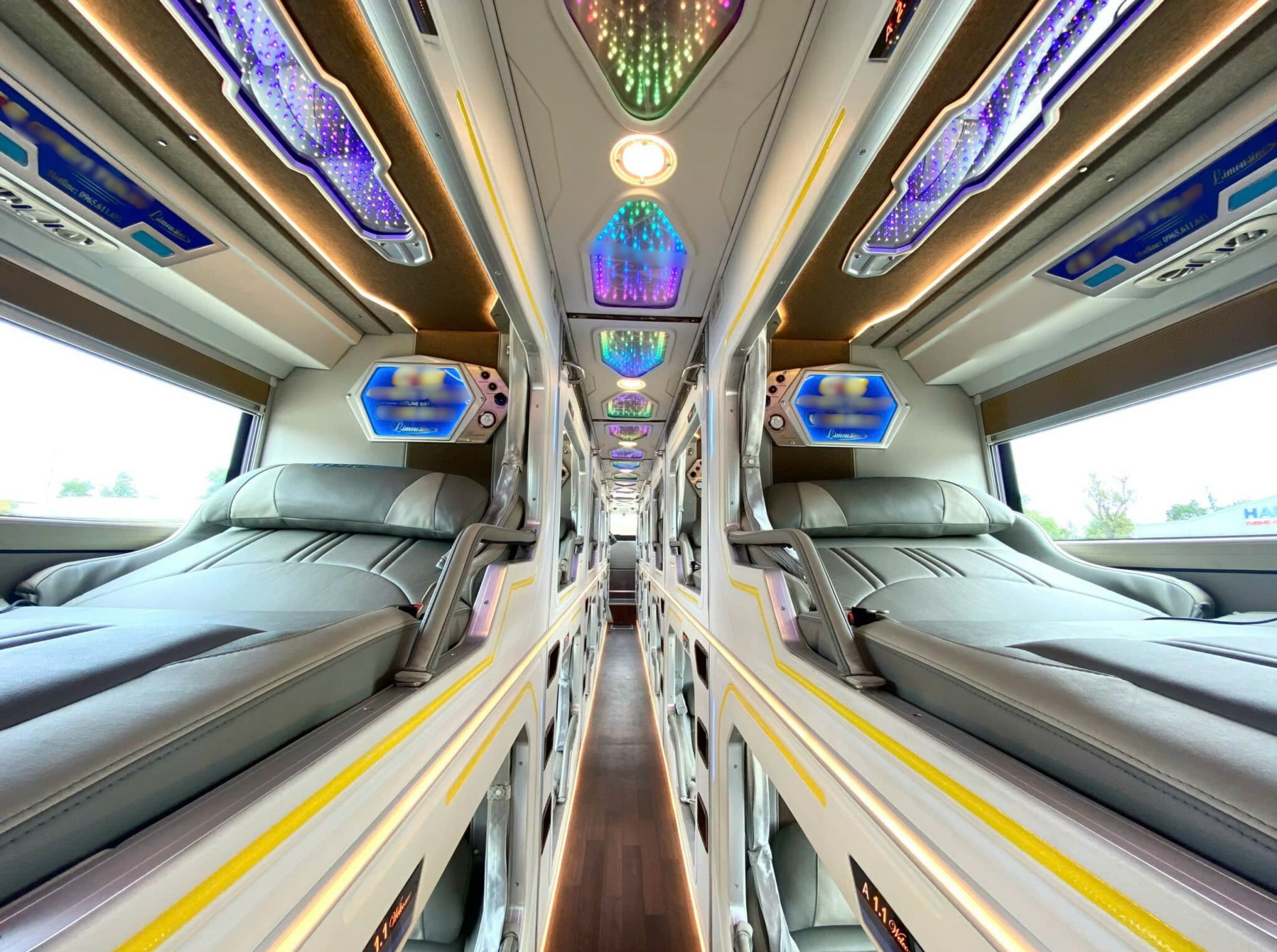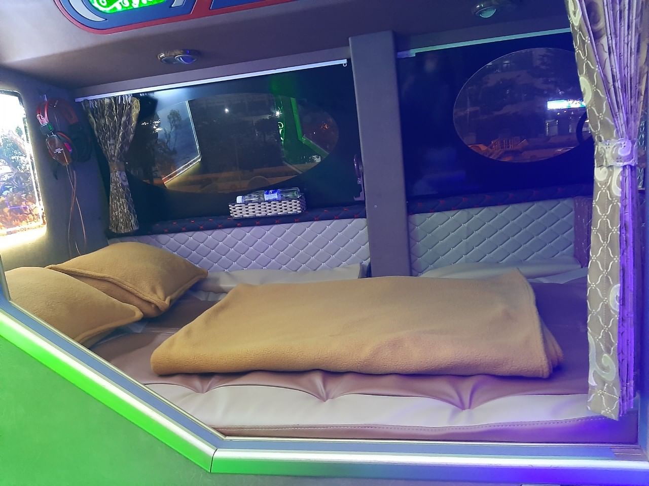 Enjoy a convenient bus journey with featuring spacious flat seats, privacy curtain, air conditioning, ample legroom and blanket