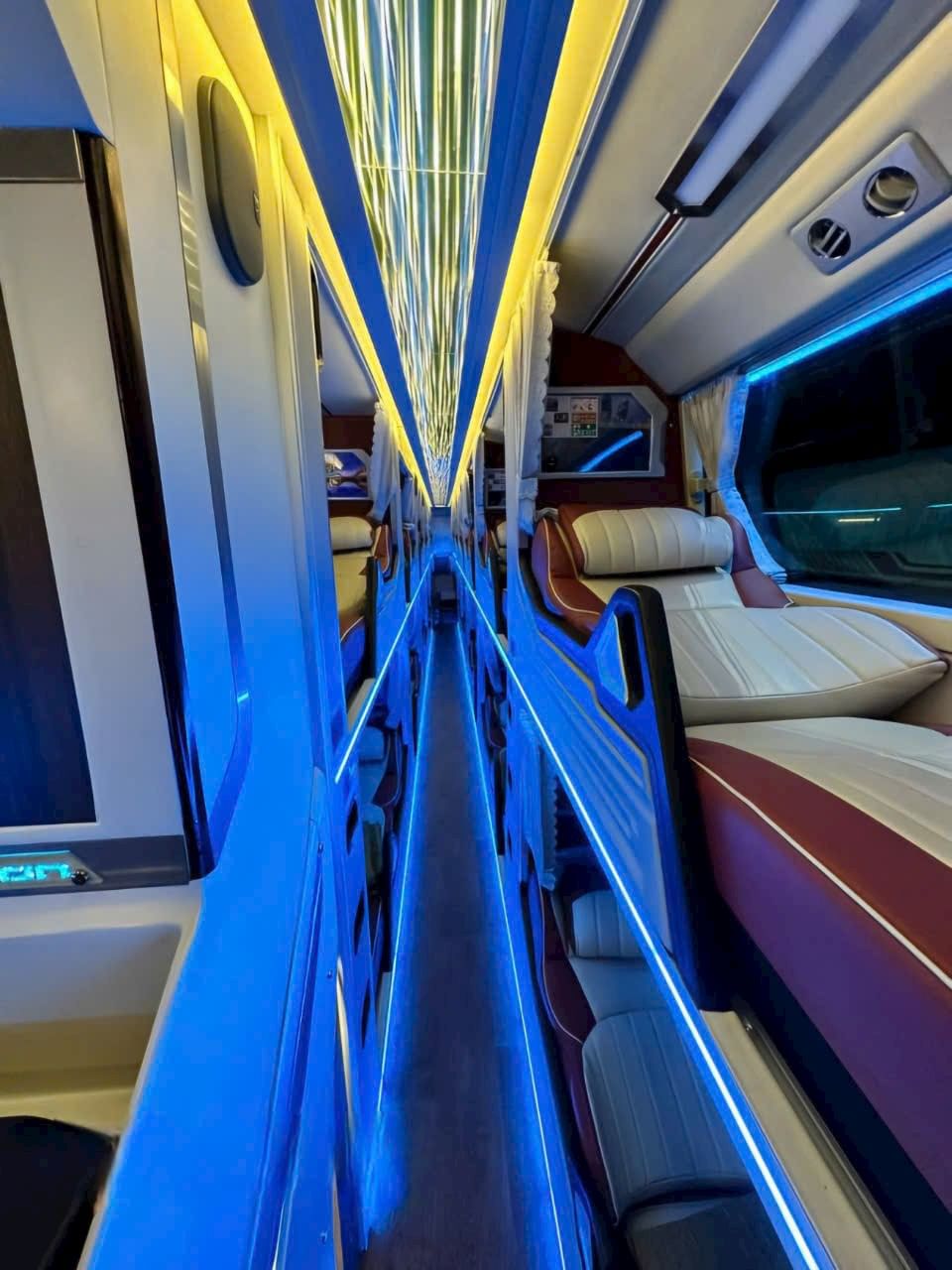Enjoy a convenient bus journey with reclining seats, privacy curtain, air conditioning, and blanket.